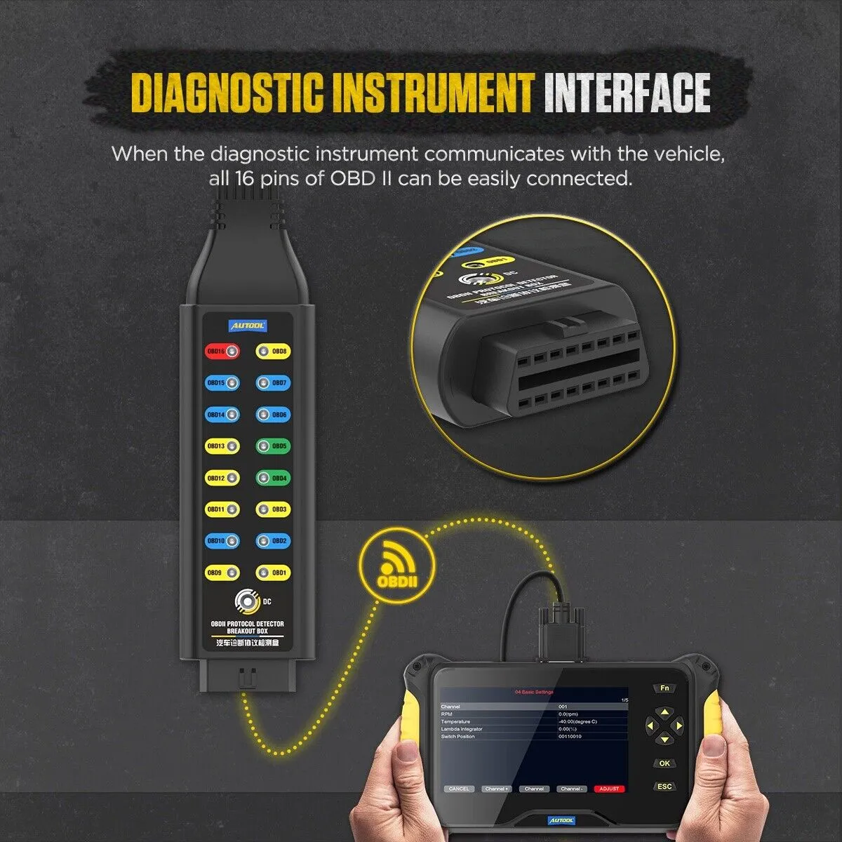 El Probador Caja de Conexiones Automotriz OBD, es una herramienta de diagnóstico automático para transferencia de señal OBD