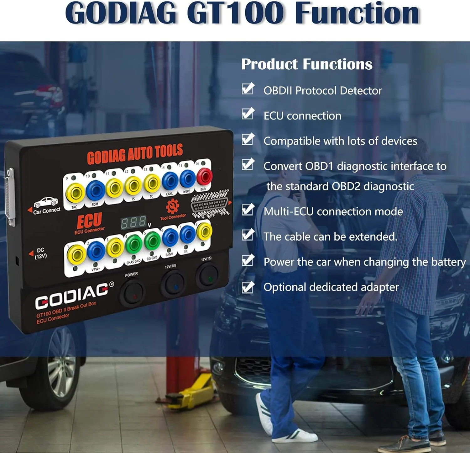 Conector ECU: GODIAG GT100 es una última plataforma de prueba de detección de comunicación de protocolo OBDII y reparación de ECU/diagnóstico/programación/codificación.