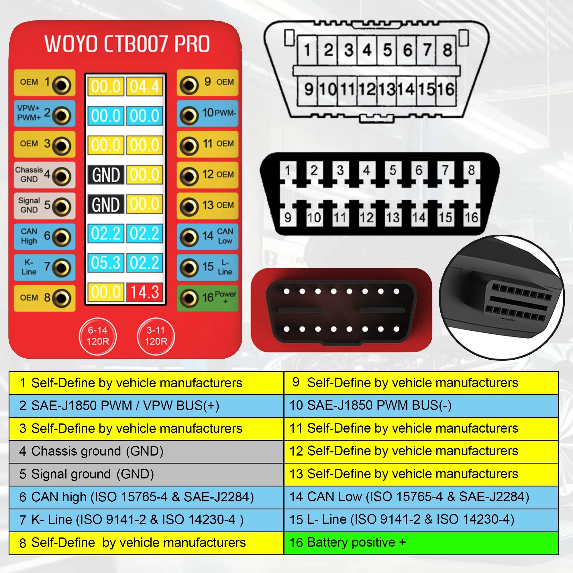 WOYO CTB007 PRO Caja de ruptura OBD2 con pantalla LCD Digital Vrms, herramienta de prueba de ECU en el banco, herramienta de diagnóstico automotriz, prueba CAN